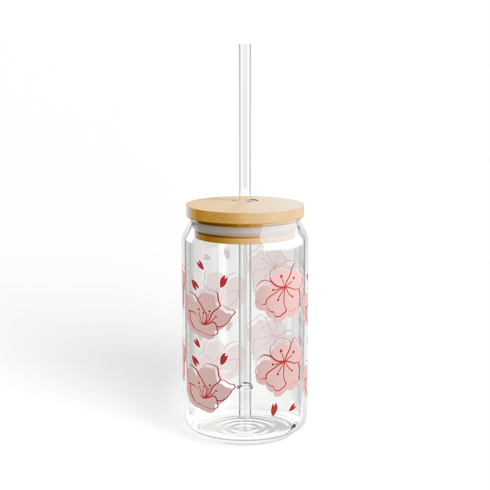 Cherry Blossom Glass Sipper, 16oz Floral Straw Tumbler
