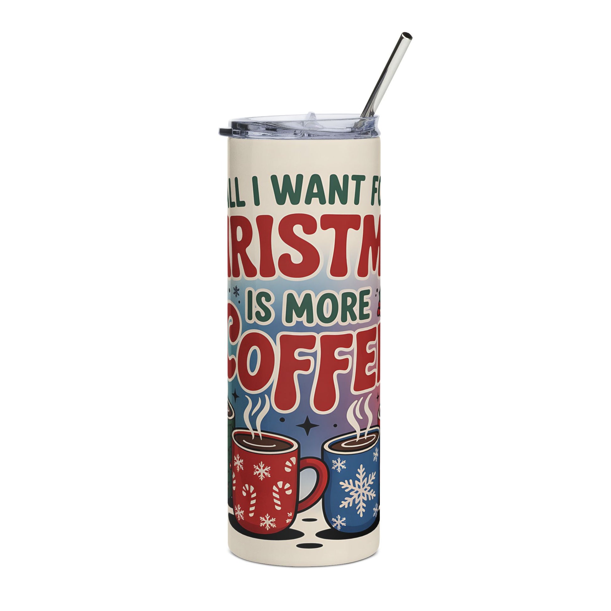 Christmas Coffee 20oz Tumbler — "All I Want for Christmas is More Coffee" Stainless Steel Travel Cup
