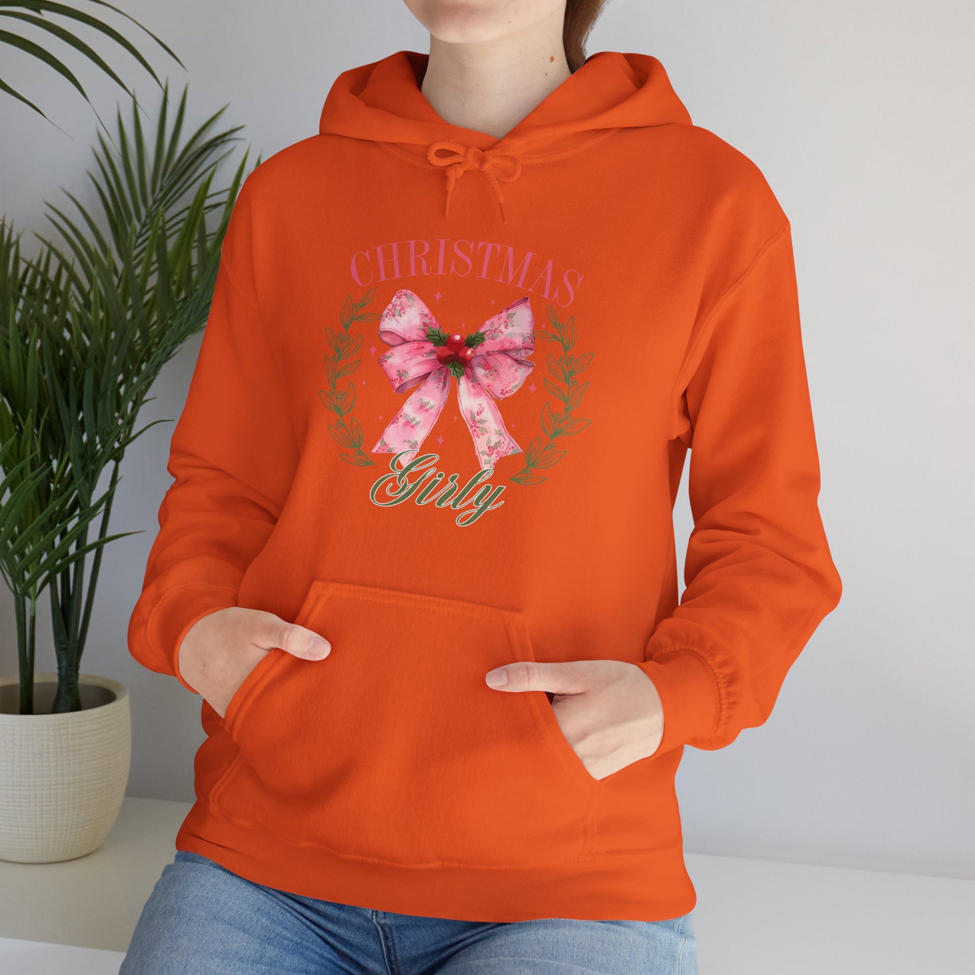 Christmas Girly Hoodie – Pink Bow Wreath Holiday Sweatshirt