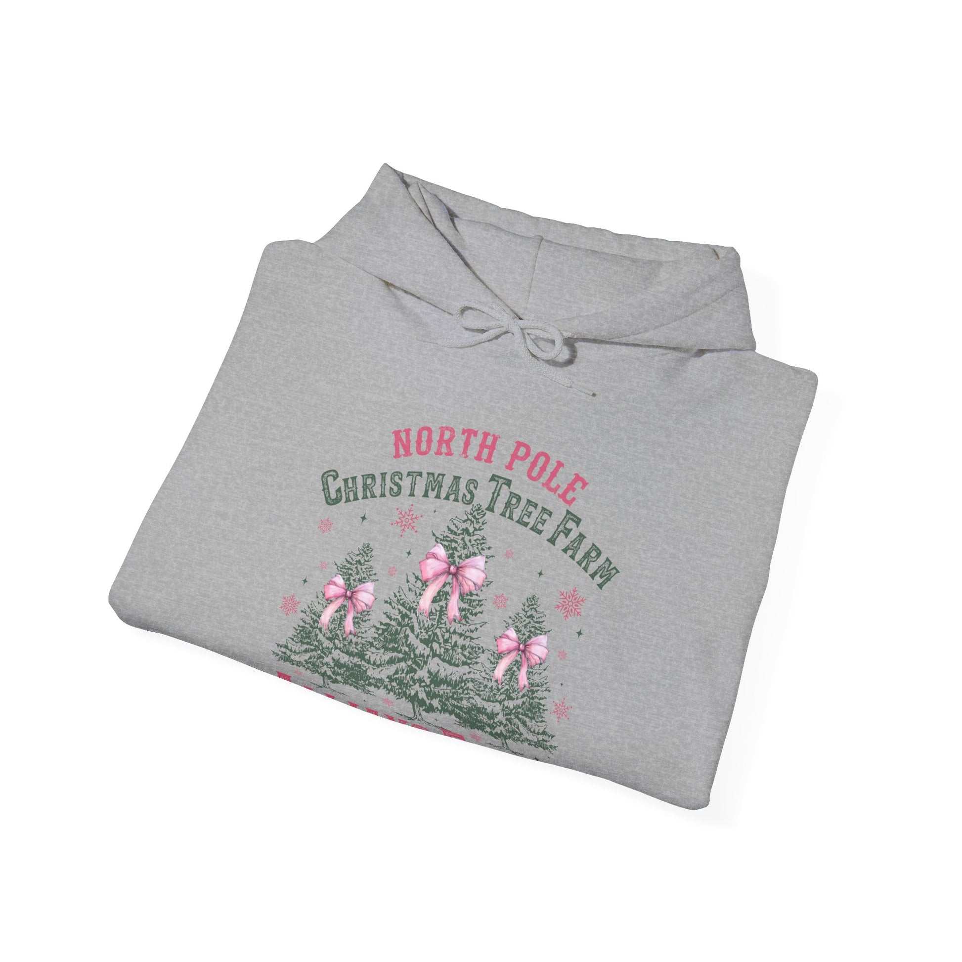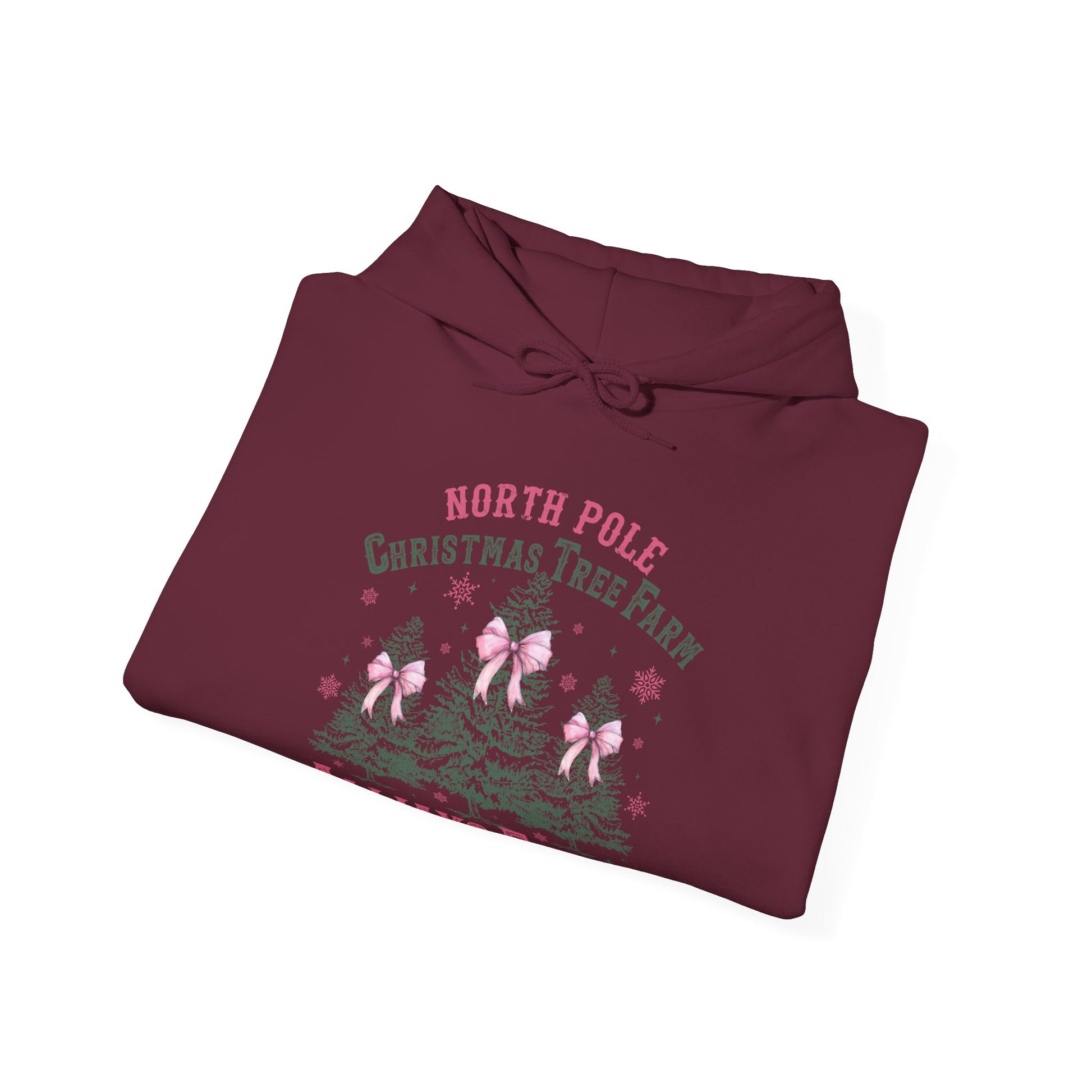 Christmas Tree Farm Hoodie - "North Pole Christmas Tree Farm Always Fresh" Cozy Holiday Pullover