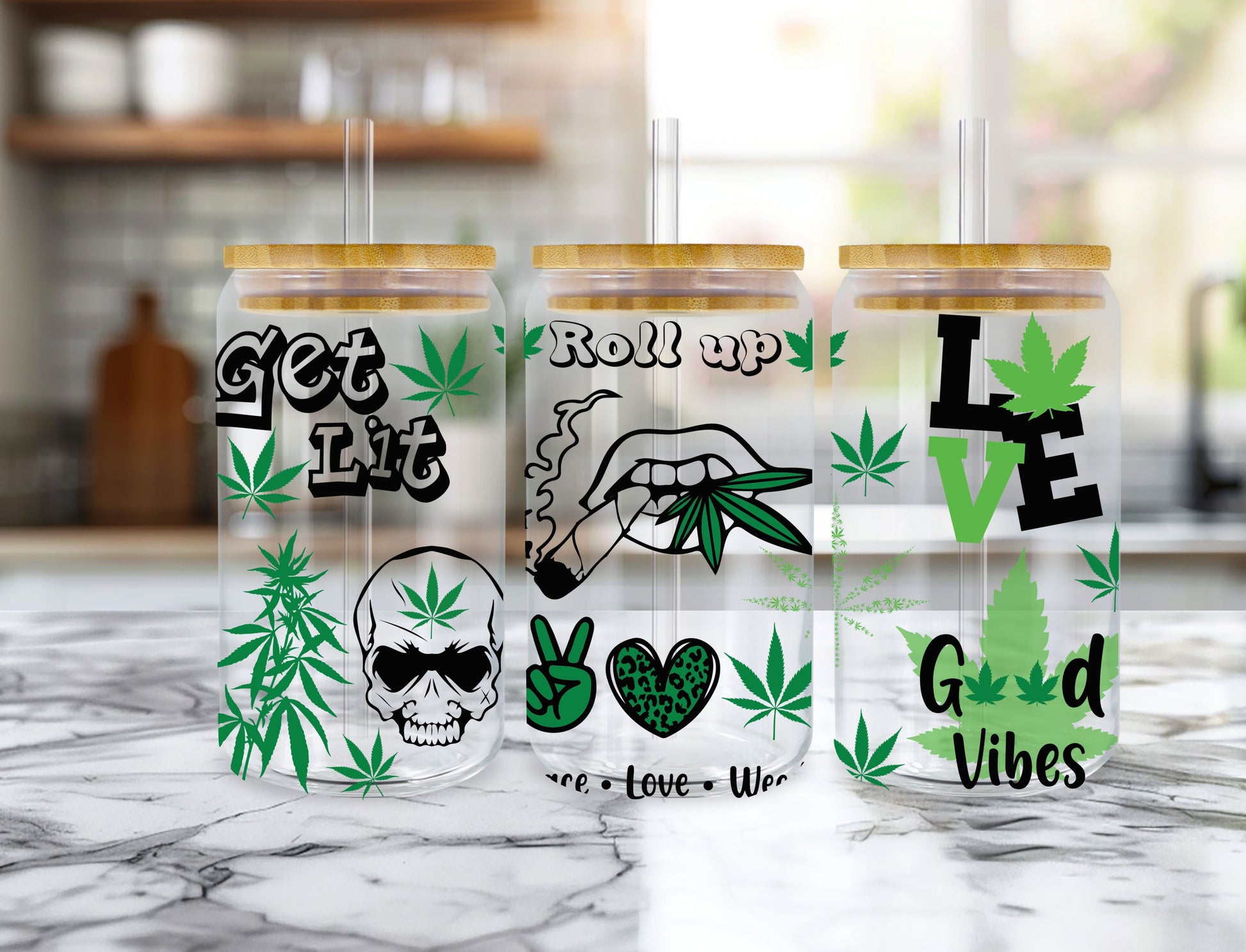 - Item Materials: Glass, Bamboo Lid, Glass Straw