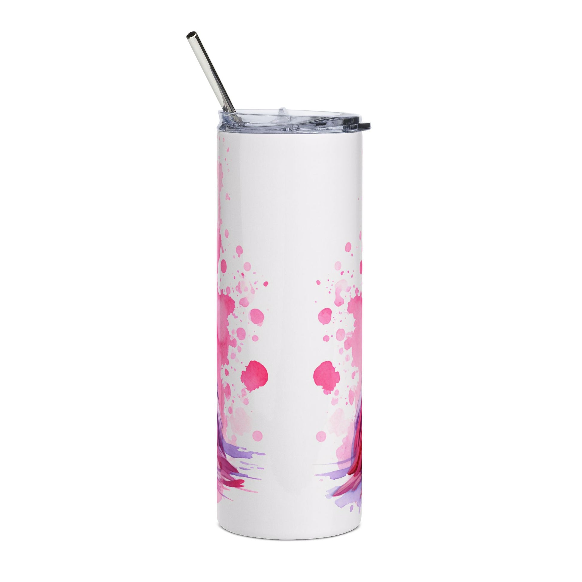 Bright, playful, and endlessly sippable — this 20 oz stainless steel tumbler brings a splash of flamingo-fueled joy to your day. The wraparound design showcases a hand-painted flamingo in sunset pinks with watercolor splashes, so every angle reveals a little feathery detail. Lightweight yet sturdy, the double-walled stainless build keeps drinks steady while the included lid and metal straw make it easy to sip on the go. Whether it rides shotgun on morning drives, perches on a studio desk, or joins you poolside, this tumbler feels like a small, stylish celebration of color and warmth.