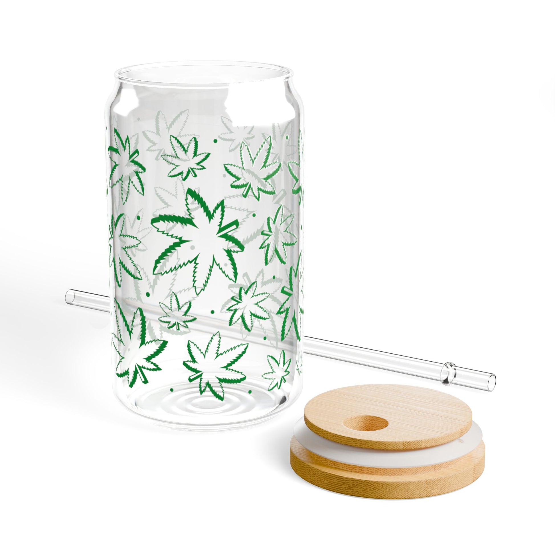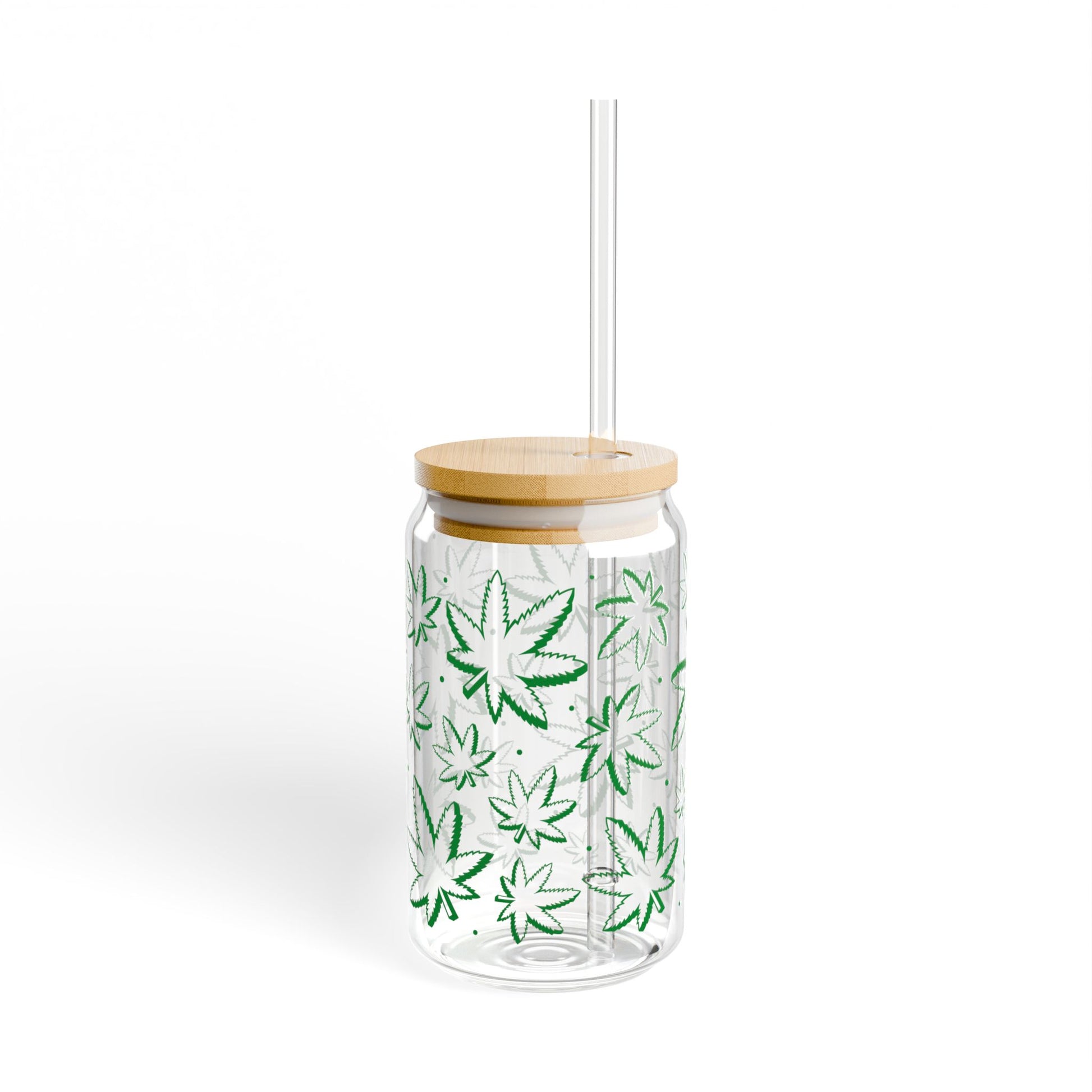 Leaf Pattern 16oz Glass Sipper with Bamboo Lid & Straw