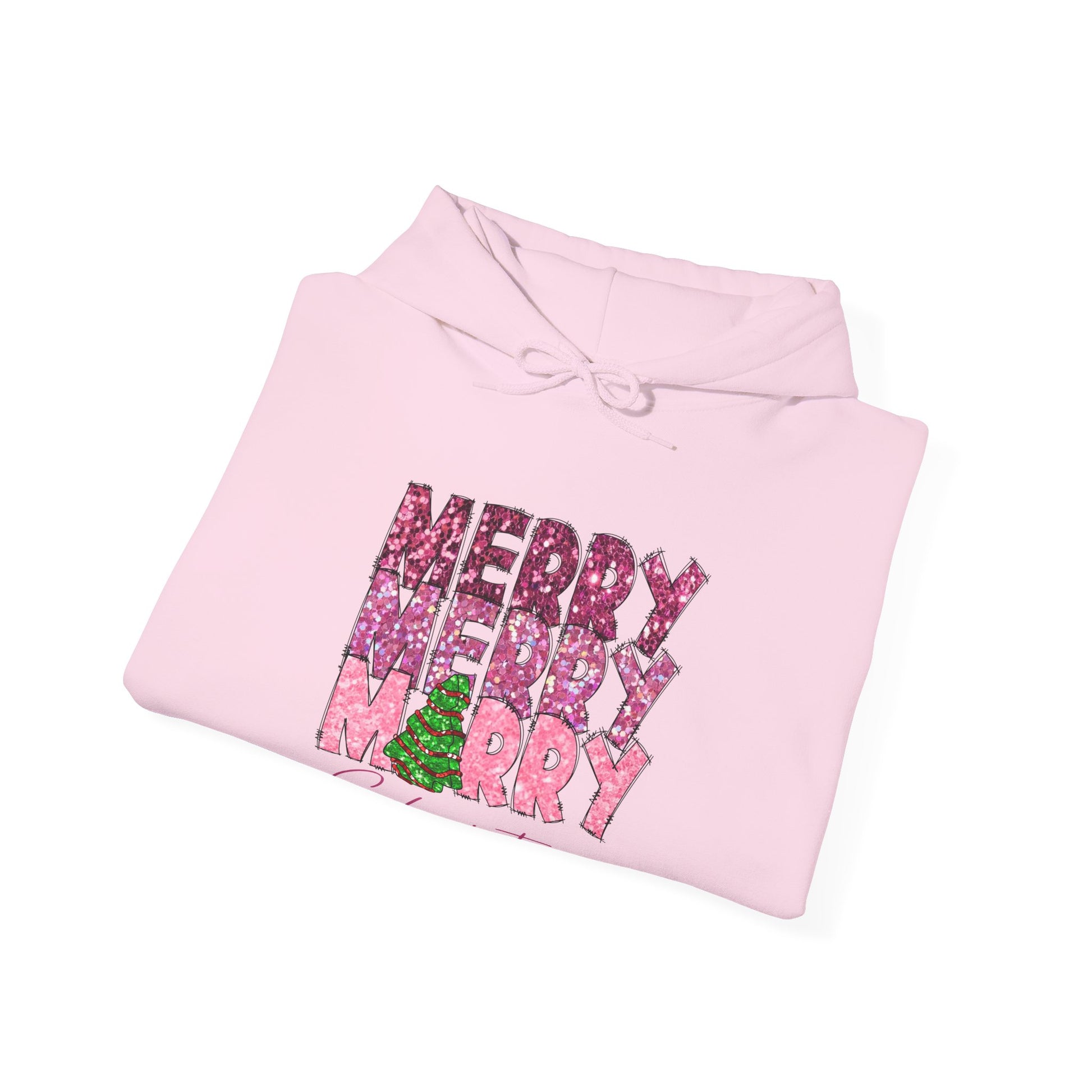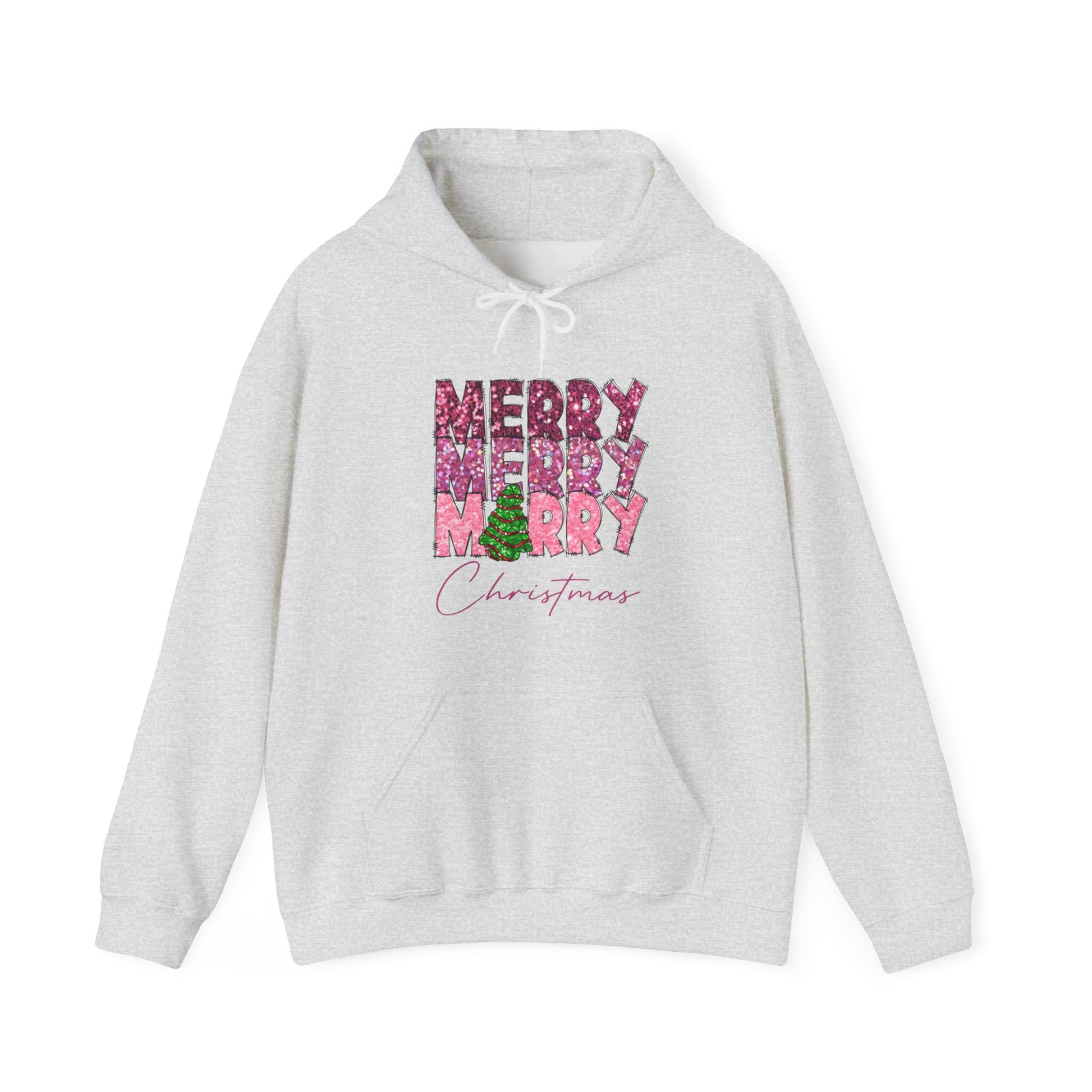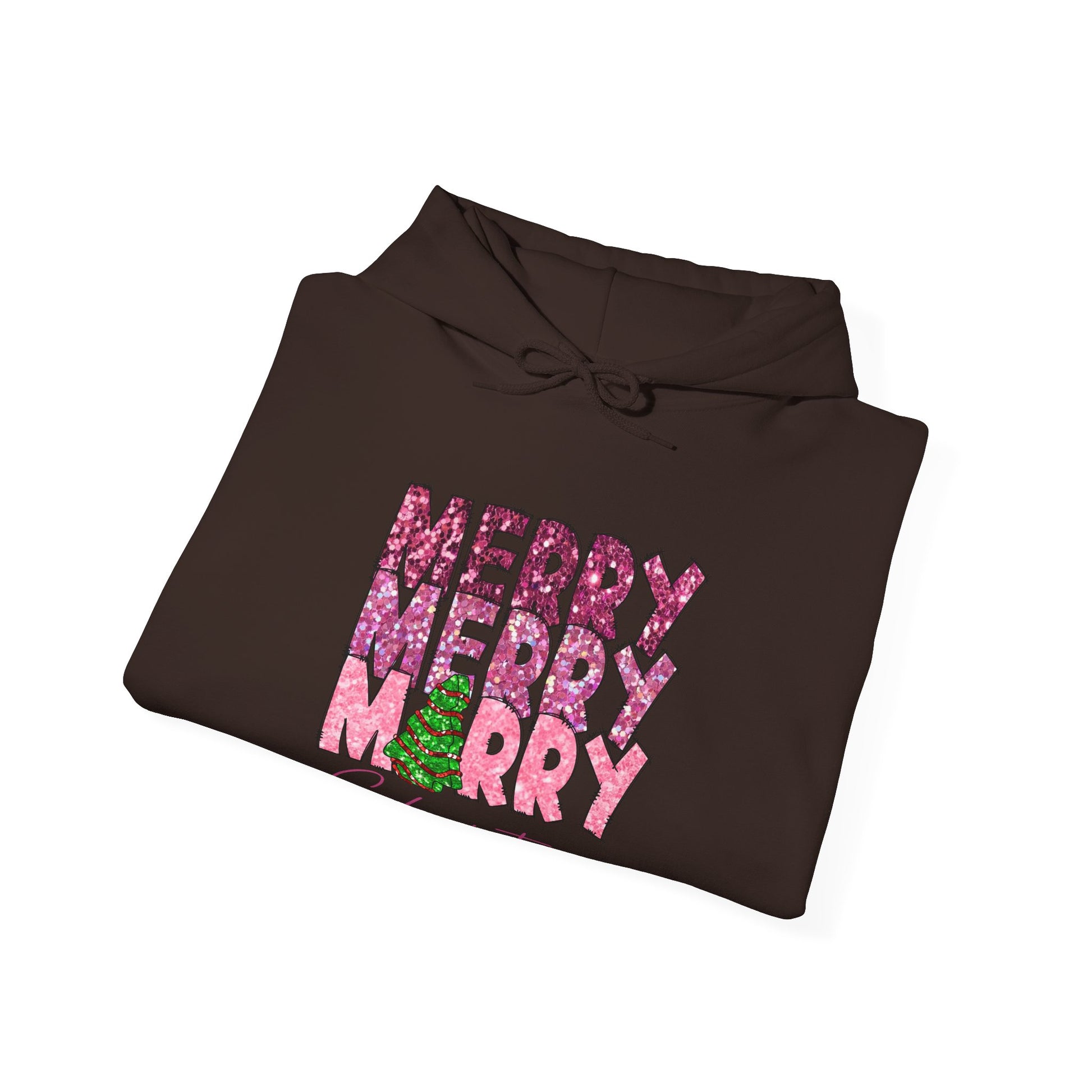 Merry Merry Merry Christmas Hoodie — Festive Floral Holiday Sweatshirt
