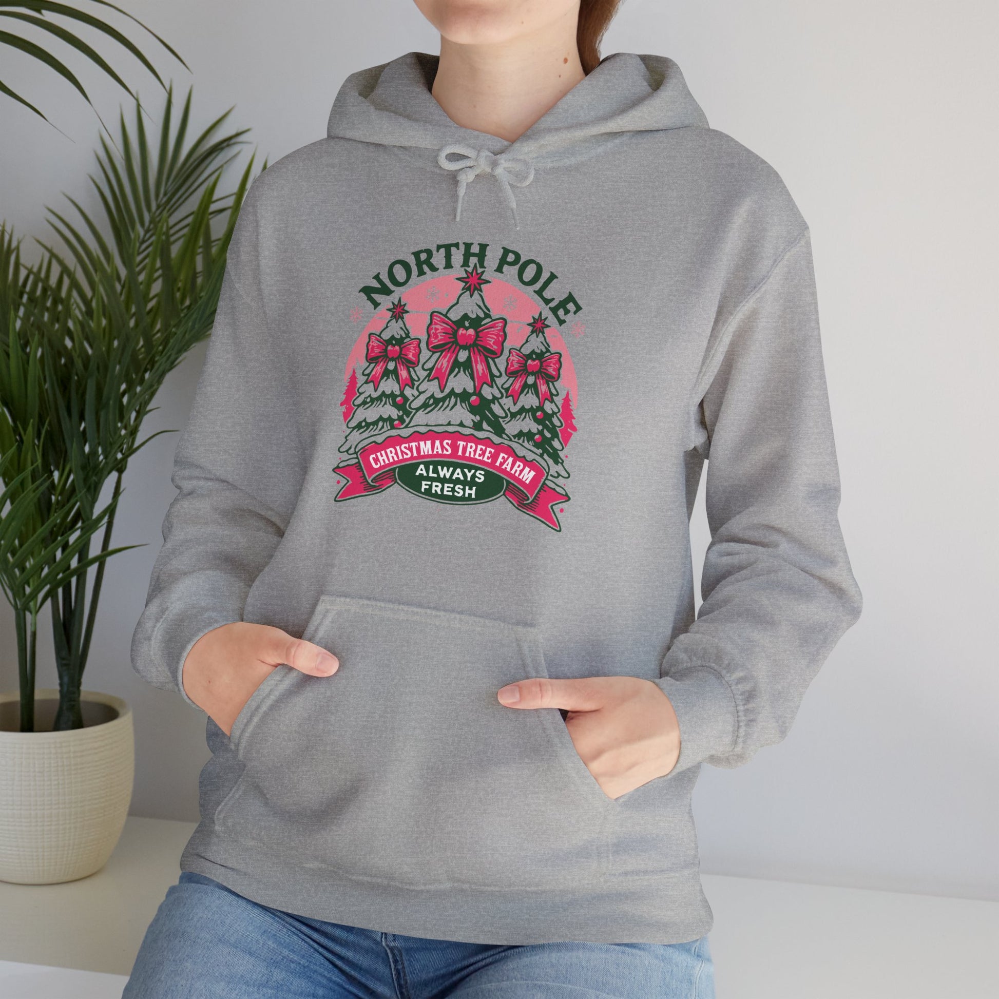 North Pole Christmas Tree Farm Hoodie - Vintage Holiday Winter Sweatshirt