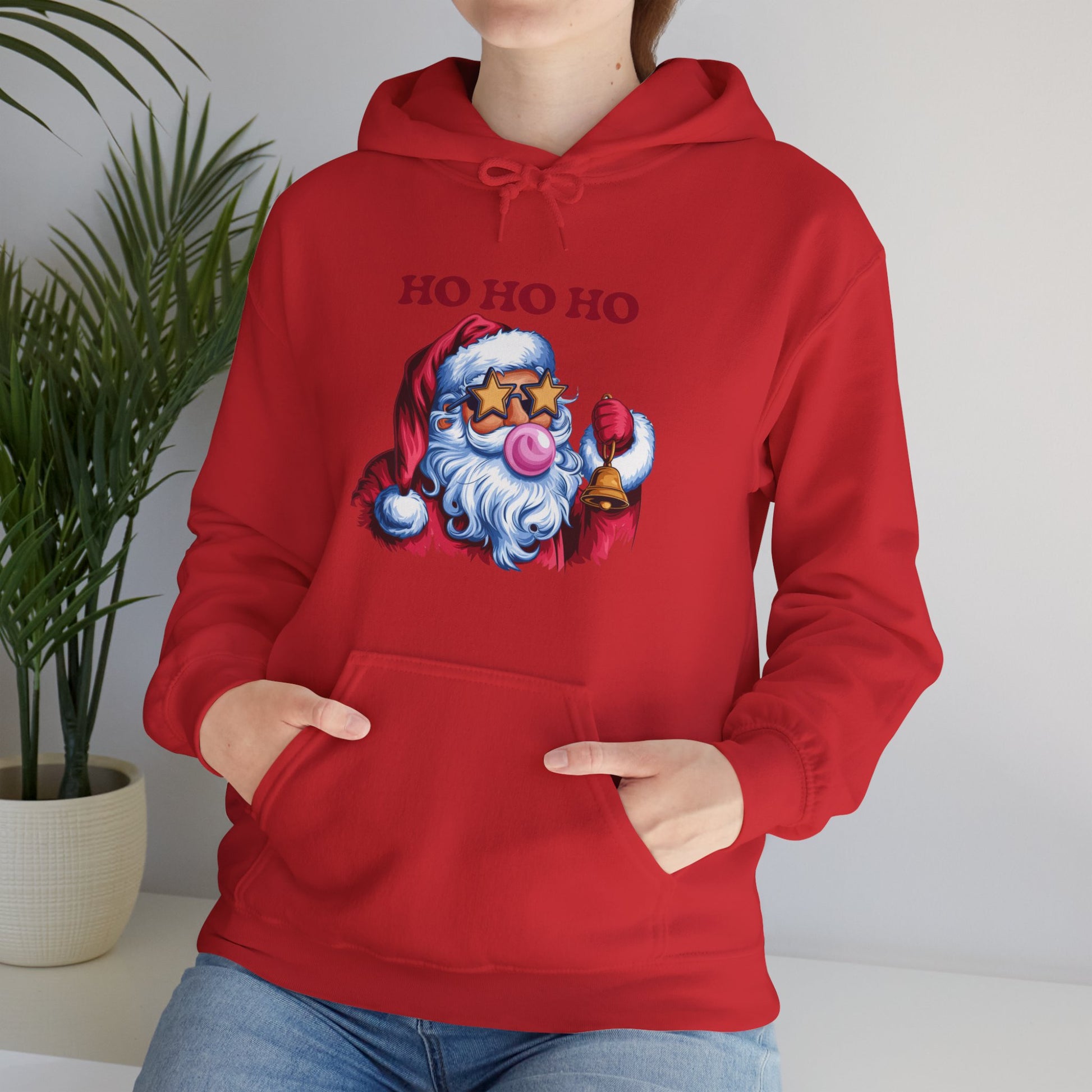 Santa 'Ho Ho Ho' Graphic Hoodie — Festive Retro Santa Pullover for Christmas